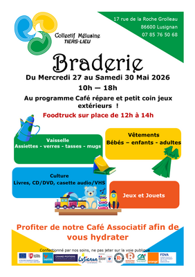 pour plus de renseignements, n'hésitez pas à nous contacter , par mail ou sur site au jour d'ouverture de la ressourcerie mercredi, vendredi et samedi de 10h - 12h et 14h - 18h30 collectif mélusine