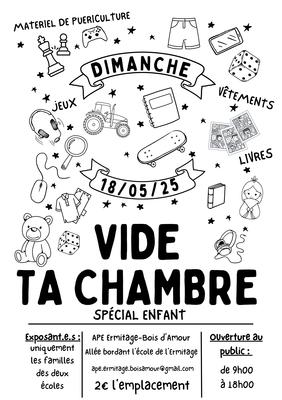 Vous pourrez trouver dans ce vide ta chambre (d'enfant) tout ce qui concerne la puériculture : vêtements, jouets, jeux, matériel de puériculture. L'entrée est gratuite pour les visiteurs et il y aura sur place de quoi boire et se restaurer.