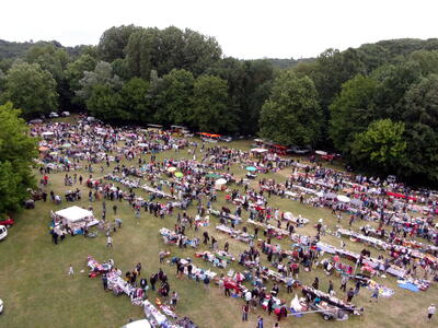 En extérieur dans un cadre idyllique. Entrée gratuite pour les visiteurs. Parkings à proximité avec sanitaires publics. Restauration et buvette. Animation.