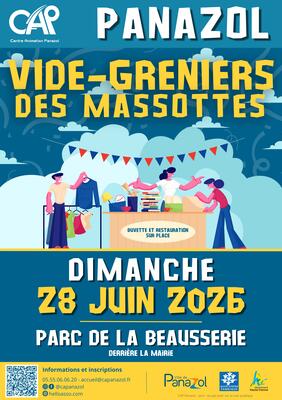 Le centre d’animation de panazol vous donne rendez-vous le dimanche 28 juin 2026 pour son vide-grenier, au parc de la beausserie, derrière la mairie de panazol, en même temps que la fête foraine ! Pour plus de renseignements, vous pouvez nous contacter par téléphone ou par mail.