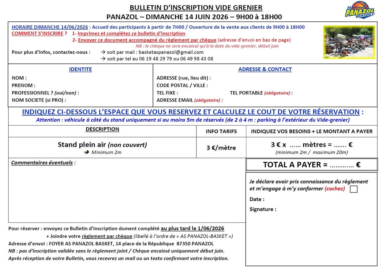 Grand vide-grenier de printemps dimanche 14 juin 2026 à panazol => 18ème édition !