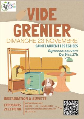 lien d'inscription : https://www.helloasso.com/associations/les-enfants-d-abord-saint-laurent-les-eglises/evenements/vide-grenier-novembre-2025
