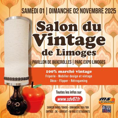 1er salon du vintage organisé par ms brocante à limoges. Plus de 50 exposants, friperie, déco , meubles accessoires, design , vintage, retrogaming, flipper ... Des années 50 aux années 70. Sur 2 jours