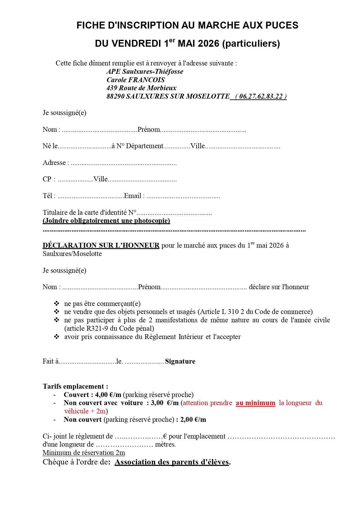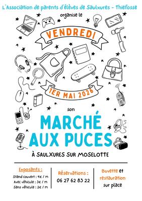 L’association des parents d’élèves (ape) de saulxures-thiéfosse a le plaisir de vous annoncer le retour de son traditionnel marché aux puces du 1er mai !