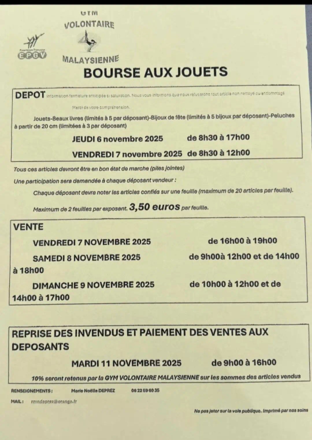 Venez déposer vos articles jeudi toute la journée et vendredi matin
