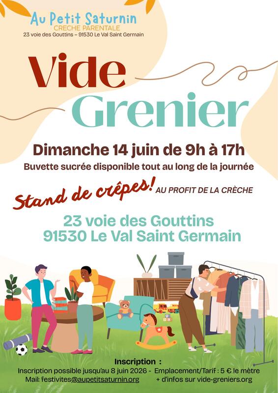 La crèche au petit saturnin organise son vide-greniers le 14 juin, de 9h à 17h, au sein de la crèche.