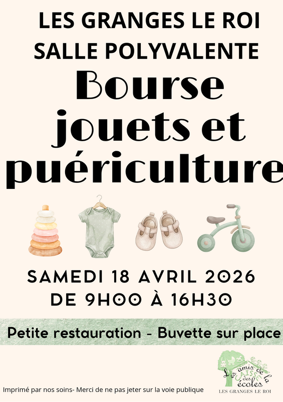 L'association les amis de la caisse des ecoles organise une la bourse à la puériculture et enfants : vêtements de 0 à 16 ans ou de grossesse, petite et grosse puériculture, livres, jeux, jouets, cd, dvd.