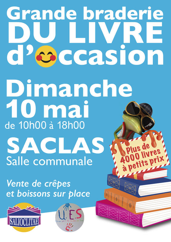 Cette braderie du livre d'occasion est organisée par l'association salioclitae afin de récupérer des fonds pour créer des animations culturelles dans le village de saclas.)
