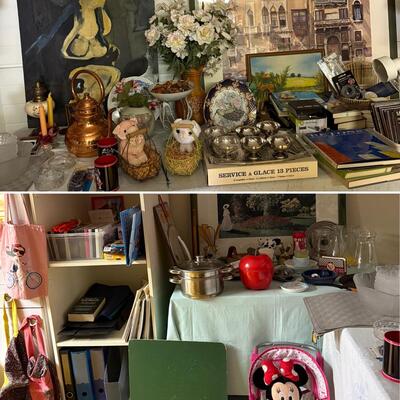 Vide-grenier : lit enfant, table basse, colonne salle de bain, petite étagère en bois, petits tapis, valets porte-vêtements, lampes de chevets, cadres, bibelots, vaisselle, verres, casseroles, vases, linge de maison, livres et jeux pour enfants (pas de jeux vidéo), vinyles …