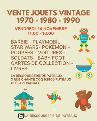 Jouets anciens (1970-1980-1990) dans emballages d'origine : barbies - poupées et mobilier, star wars, baby foot, playmobil, pokemon, poupées, soldats, voitures, cartes de collection et livres.