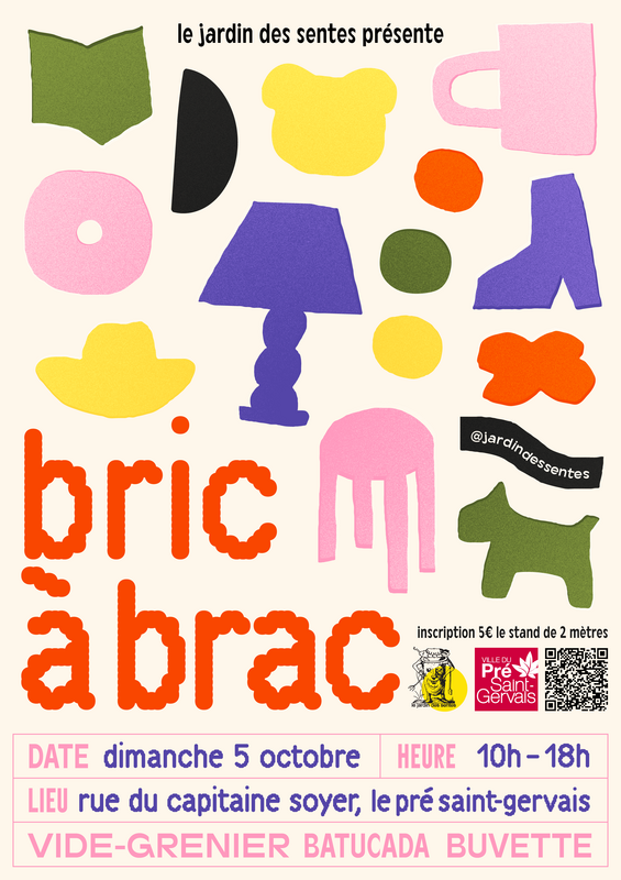 Le jardin des sentes organise son grand vide-greniers le dimanche 5 octobre, de 10h à 18h, en plein centre-ville du pré saint-gervais.