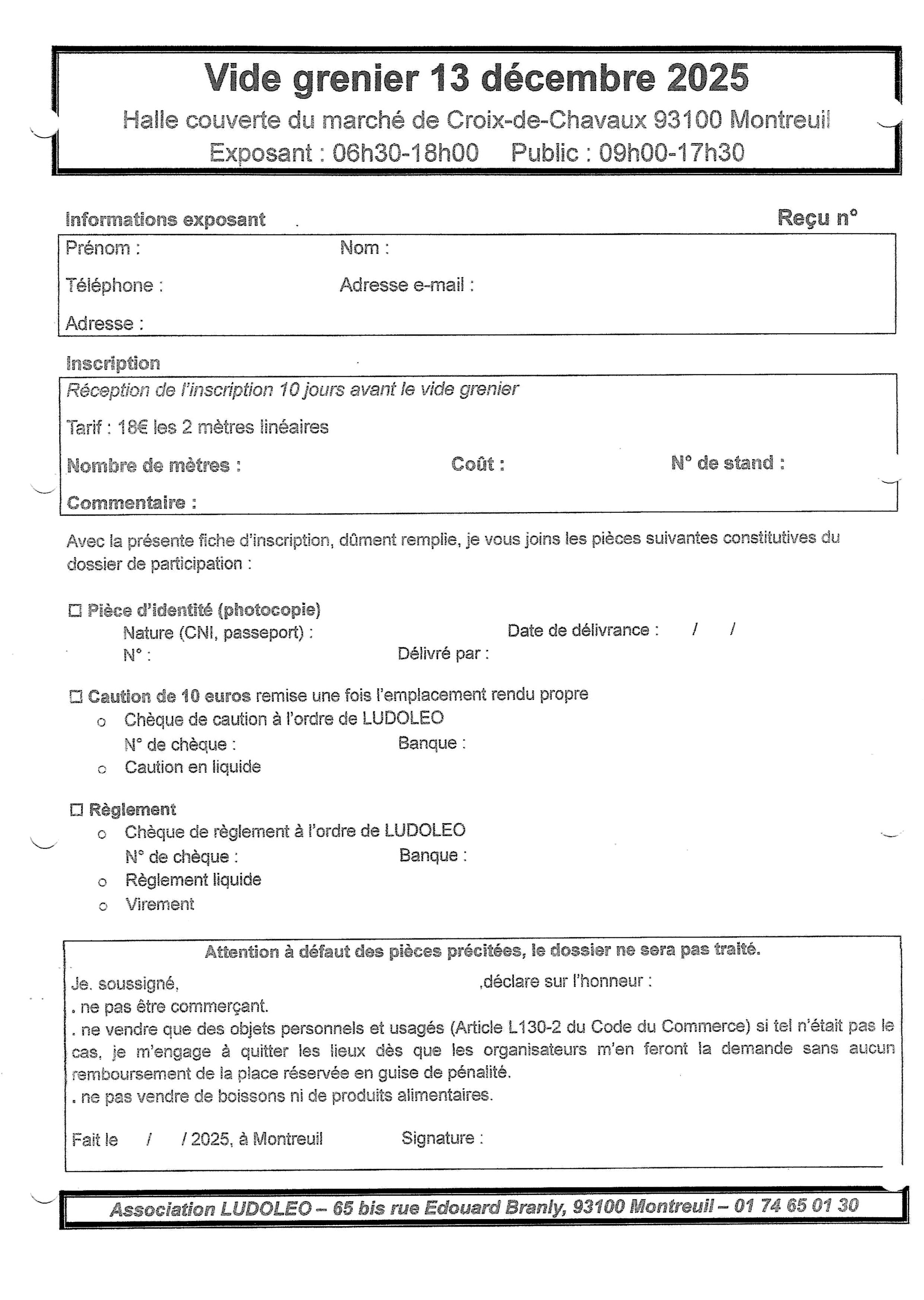 L'association ludoléo organise son habituel vide-grenier couvert sous la halle croix de chavaux.