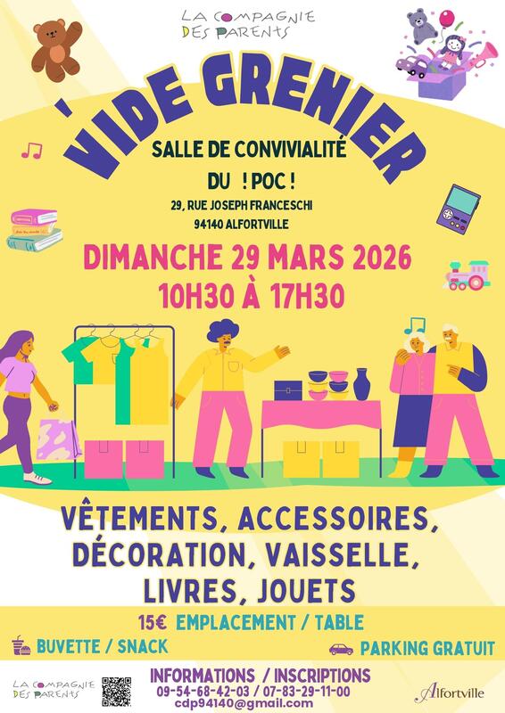 L'association la compagnie des parents organise un vide-grenier à la salle de convivialité du poc.