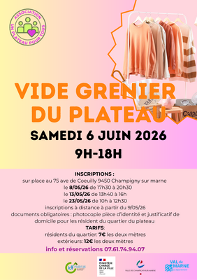 Ext. : 12€/2 m inscription le 8 mai 2026 de 17h30 à 20h30, le 13 mai de 13h40 à 16h et le 23 mai de 10h à 12h30 à la marmite du plateau 75 avenue de coeuilly 94500 champigny-sur-marne ou par téléphone inscription et paiement à distance possibilités de s’inscrire sur place le jour j si place disponibles