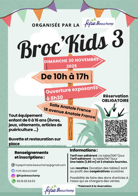 Broc’kids 3 – bourse aux jouets, vêtements, livres et puériculture