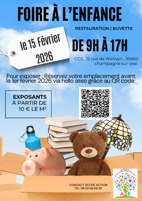 L'association des parents d'élèves recré’action organise son incontournable foire à l'enfance pour donner une nouvelle vie aux vêtements, jouets, livres, matériel de puériculture... De vos enfants !