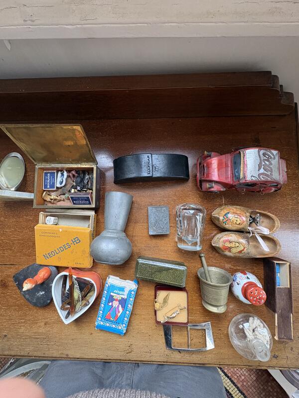 bibelots, vaisselle, verreries, objets déco , affiches, porcelaine, meubles, cartes postales, timbres, velours, métal argenté, linge de maison , buffet , table de jardin etc …