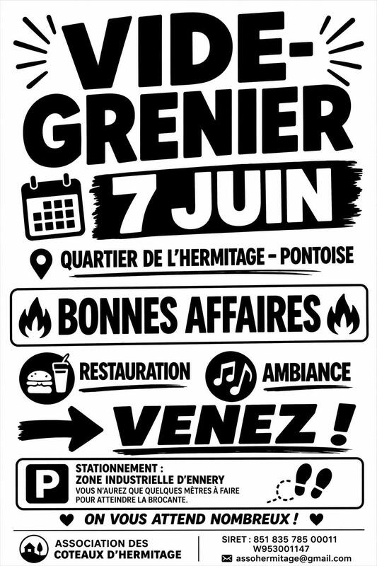 L'association des coteaux de l'hermitage vous proposera diverses animations telles que de la restauration (grillades, camemberts rôtis, barbes à papa, buvette...). Stationnement zone industrielle d'ennery, vous n'aurez que quelques mètres pour atteindre la brocante.