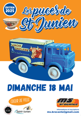 Les puces de saint junien ont lieu 3 fois pas an. C'est une brocante professionnelle, en aout les particuliers sont acceptés.