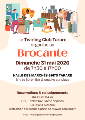 Le twirling club de tarare organise une brocante vider vos placards garages ou autres venez passer une super journée avec nous snack buvette toute la journée. On a besoin de vous tous visiteurs et ...