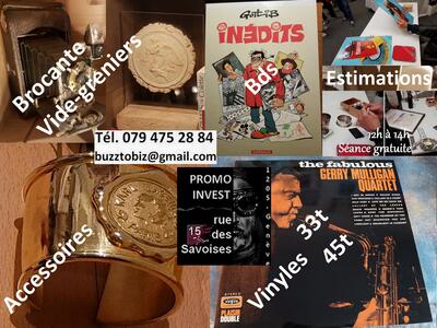 Visiter en plus notre galerie d'objets en saisissant sur google: 14.12.25 brocante (notre annonce apparait) ou sur anibis.Ch, puis cliquer sur le lien "toutes les annonces", bien d'autres galeries d'objets de certains de nos exposant(e)s à visiter aussi en vide-greniers , en bijoux, en déco, bds, bds manga, etc., ces objets sont disponibles à la réservation voir éventuellement à l'achat avant la date de l'événement mais aussi après l'événement. Nous mettons à jour régulièrement la disponibilité de ces derniers évidemment.