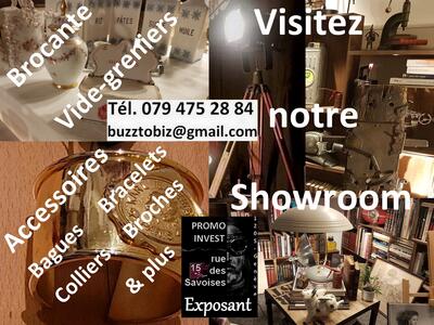 Visitez aussi dès le 12.01.26 notre galerie d'objets en saisissant sur anibis.Ch: 01.02.26 showroom -brocante puis cliquez sur le lien "toutes les annonces", bien d'autres galeries d'objets, ces objets sont disponibles à la réservation voir éventuellement à l'achat avant la date de l'événement mais aussi après l'événement. Nous mettons à jour régulièrement la disponibilité de ces derniers évidemment.