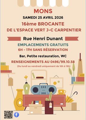 Ne manquez pas la 16ème brocante de l'espace vert j-c carpentier, installée sur la rue henri dunant.