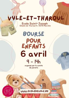 Bourse enfants : jouets, vêtements, livres, matériel éducatif, articles de puériculture.
