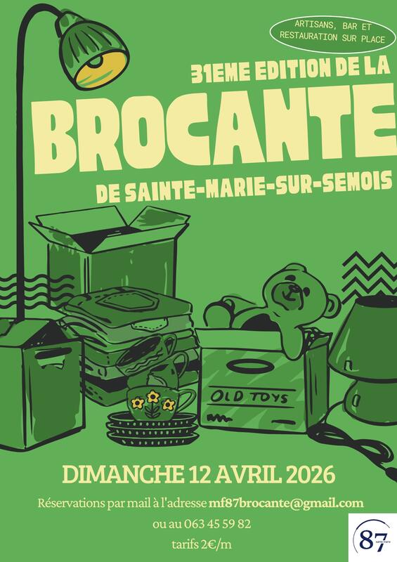 Ne manquez pas la 31ème brocante de rue organisée par le mini-foot de sainte-marie 87 ce 12 avril 2026 dans le village de sainte-marie sur semois.