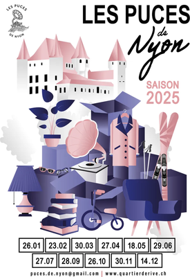 Le marché aux puces de nyon a lieu tous les derniers dimanches du mois sauf en août, au bord du lac, dans le quartier de rive à nyon. Il fera le bonheur des chineurs avec ses nombreux brocanteurs, puciers et privés.